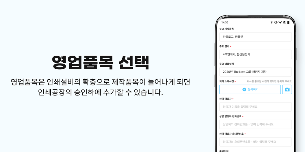 인쇄업체의 경우에는 영업과 홍보, 고객 연결에 드는 시간을 절약할 수 있다. 고객이 견적 요청 시 앱을 통해 해당 내용을 파트너스사에 전달하고, 업체는 인쇄공장 양식에 따라 견적서를 작성해 고객에게 다시 전달하는 과정으로 운영된다.