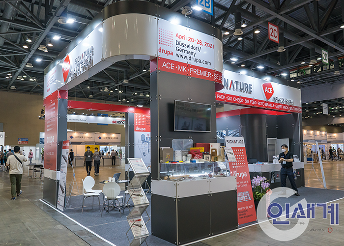 SIGNATURE라는 브랜드명으로 국내는 물론 해외 시장에서 선두업체로 활약하고 있는 자동카톤접착기 전문생산기업 에이스기계㈜(대표이사 이철/www.acegluer.com)는 지난해 에이스기계에서 제작한 전용접착기를 통해 대량생산이 가능해지면서 국내 시장에서 점차 그 상품성을 인정받고 있는 혁신 아이디어 제품 날개박스 샘플과 함께 스테디셀러 모델 ACE(오리엔트)부터 미국과 국내시장에서 주가를 높이고 있는 대형 골판지 전용 모델 알바트로스(ALBATROSS) 등 다양한 SIGNATURE 제품 라인들을 영상과 카탈로그를 통해 소개하고 부스를 찾은 고객들과 상담을 진행했다. ☎ 031)433-2582