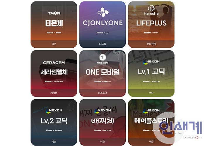 삼성, 네이버, 카카오, 현대카드, CJ 등 여러 기업들의 전용서체를 제작했으며, 릭스폰트클라우드를 통해서 폰트 구독 서비스를 제공하고 있습니다.