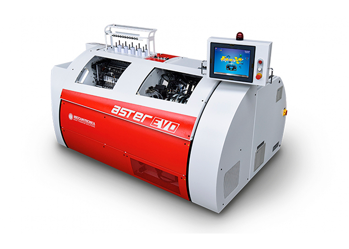 ‘ASTER EVO’는 밀폐시킨 캠 박스 방식을 사용해서 고속 동작의 경우에도 소음이 적고 기계의 흔들림이 적다. 또한 독일 지멘스(Siemens) 사의 Microbox PC와 대형 터치스크린이 탑재되어 PC 하나로 기계와 카메라 제어가 가능하다. 내장된 접지 검출용 카메라 기가링스(Gigalynx) 카메라는 화상과 바코드 중 인식할 방식을 선택해서 사용할 수 있고, 접지의 상태에 따라 기계 속도를 가변적으로 구동할 수 있도록 해서, 제품의 불량을 최소화 할 수 있다.