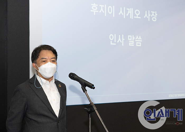 한국엡손 후지이 시게오 대표이사는, “슈어프레스에는 엡손의 많은 원천 기술이 집약되어 있으며 국내 시장에서 많은 호응을 기대하고 있다”고 하면서, “앞으로 엡손의 라벨 인쇄기술로 국내 시장 성장에 기여하고자 하며, 새롭게 선보이는 슈어프레스에 대한 많은 격려와 관심을 바란다”고 말하고, 장비 론칭까지 많은 도움을 준 상동화 김원기 대표이사와 관계자들에게 감사 인사를 전했다.