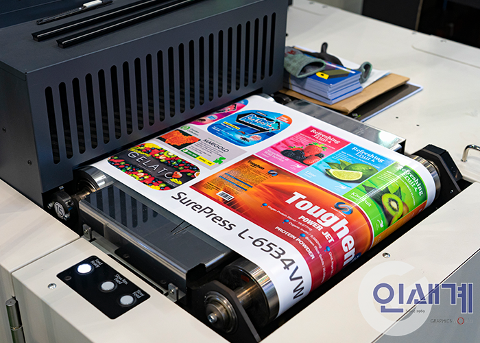 김영한 과장은, “높은 부가가치와 생산성, 탁월한 수준의 품질을 특징으로 하는 엡손 슈어프레스 L-6534VW는 CMYK와 화이트 잉크 등 기본 5색을 지원하는 것은 물론 오렌지 컬러와 디지털 바니시 잉크(유광, 무광, 부분)를 선택해서 보다 다양한 컬러와 효과를 구현할 수 있으며, 디지털 인쇄장비에 있어 핵심 요소인 프린트 헤드와 잉크 등을 모두 엡손이 직접 개발하고 제작해서 고객들에게 안정적인 서비스를 제공할 수 있다”고 하면서, 장비 설명을 했다.