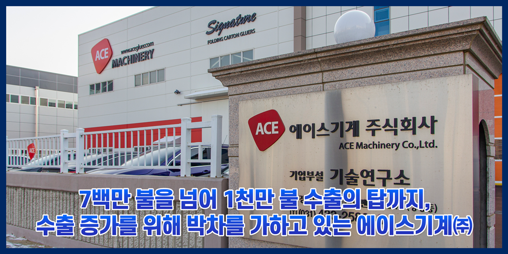 자동카톤접착기 전문 생산기업 에이스기계㈜(대표이사 이철/www.acegluer.com)이 해외 수출 물량 증가를 위해 더욱 박차를 가하고 있다.