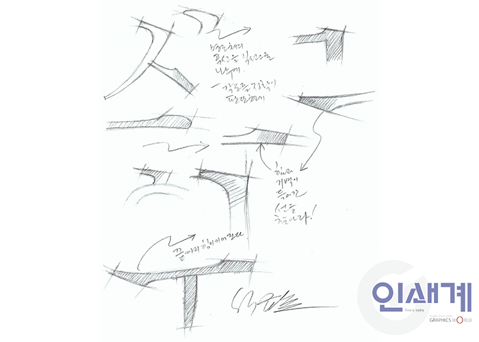 석금호 의장 : 맑은고딕이 나오기 전까지 윈도우즈 프로그램에서 사용되던 대표적인 폰트는 굴림체였습니다. 굴림체의 모태는 일본 타이포그라피 디자이너 나카무라 유키히로 선생이 디자인한 나루체입니다. 일본에서 사진 식자기를 우리나라에 수출하면서 사진 식자기의 기본적인 일본어 폰트 가운데 하나인 나루체를 한글화해서 국내에 보급되었고, 이를 기반으로 만들어진 국적이 불분명한 ‘굴림체’가 윈도우즈에 기본 서체로 탑재되면서 많이 사용되게 된 거죠. 이러한 과정을 알고 있는 입장에서 한글 폰트가 일본의 서체에서 응용됐다는 것이 안타까웠고 한국의 정서가 담긴 완전한 한글폰트가 필요하다는 생각을 지속해 왔습니다.