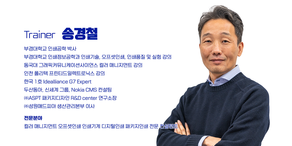 교육내용 : G7 사양의 이점과 특징, 컬러 캘리브레이션 원리, 프레스 컨트롤 등 이론과 실습, 인증 테스트(오프라인 대면 교육)