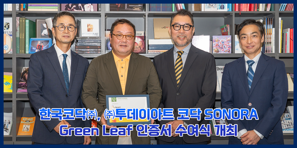 한국코닥㈜(대표이사 변영진/www.kodak.com/kr)이 지난 10월 11일 ㈜투데이아트 파주 1공장에서 코닥 SONORA Green Leaf 인증서 수여식을 개최했다.