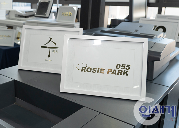 오픈하우스 방문객들에게는 바니시와 박 효과를 구현한 2023년 탁상형 캘린더를 증정했으며, 방문객들이 현장에서 직접 손 글씨로 사인이나 원하는 글씨를 작성하면 이를 AccurioShine 3600에 탑재된 AIS 스캐닝 기술과 iFoil One을 활용해서 금박으로 인쇄, 액자에 담아서 증정해서 좋은 반응을 얻었습니다.