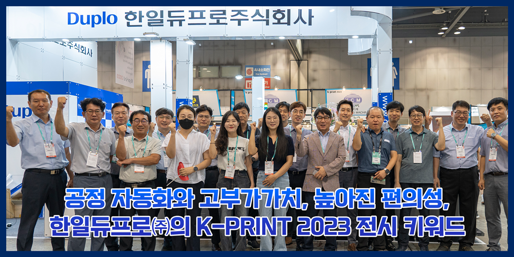 공정 간소화와 고부가가치 인쇄물 생산을 위한 여러 업체들의 디지털 후가공 장비들이 시장에 소개되고 있는 가운데 이번 K-PRINT 2023 전시장에서는 한일듀프로에서 국내 시장에 론칭한 B2 사이즈 DIGITAL SPOT UV COATER DDC-8000이 단연 큰 화제를 모았다.