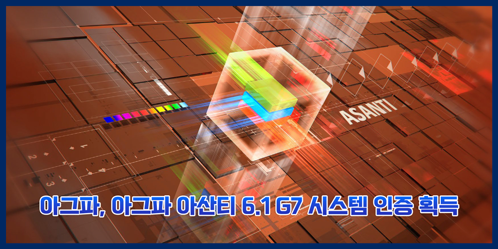 아그파 아산티 6.1(Agfa Asanti 6.1)이 아이디얼라이언스(Idealliance)의 G7 시스템 인증을 획득했다. 이번 인증을 통해 인쇄 서비스 제공업체는 아산티 시스템을 사용한 G7 캘리브레이션 및 커브 생성이 가능해졌으며, 직관적인 사용자 인터페이스와 생산 대시 보드를 기반으로 강력한 컬러 매니지먼트 툴을 제공하게 되었다. 이번 아이디얼라이언스(Idealliance)의 G7 시스템 인증 획득으로 전 세계 아그파 고객사들은 인쇄 표준과 사양을 토대로 한 인쇄물 생산이 가능해졌다.