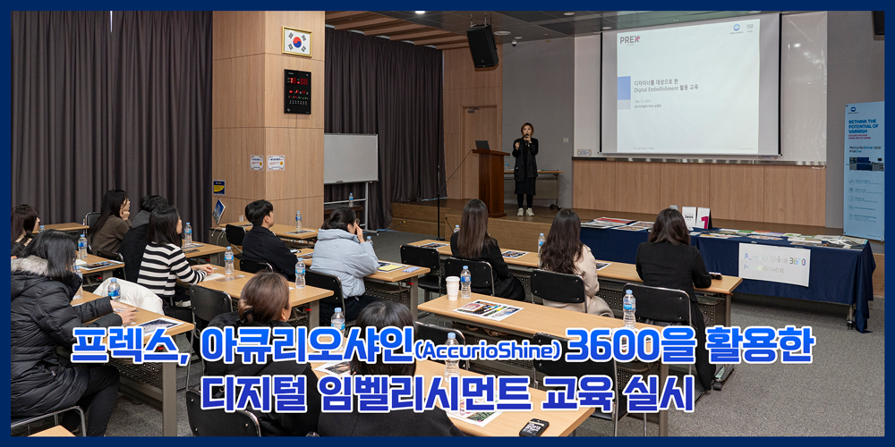 디자인&인쇄 전문기업 프렉스(대표 박백윤/www.prexmall.co.kr)가 지난해 12월 13일 부산 센텀스카이비즈 회의실에서 코니카미놀타 디지털 후가공기 아큐리오샤인(AccurioShine) 3600을 활용한 디지털 임벨리시먼트(Digital Embellishment) 교육을 실시했다.