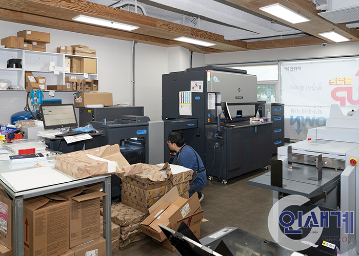 가까이에 있으면서 협업이나 하청을 하는 일반적인 인쇄업계 특성과는 다른 선택이었지만, 이러한 과정을 거치면서 가장 효율적인 동선의 디지털 인쇄 공정을 구축할 수 있게 되었으며 작업 속도와 품질에서 높은 고객 만족도를 유지하고 있습니다.