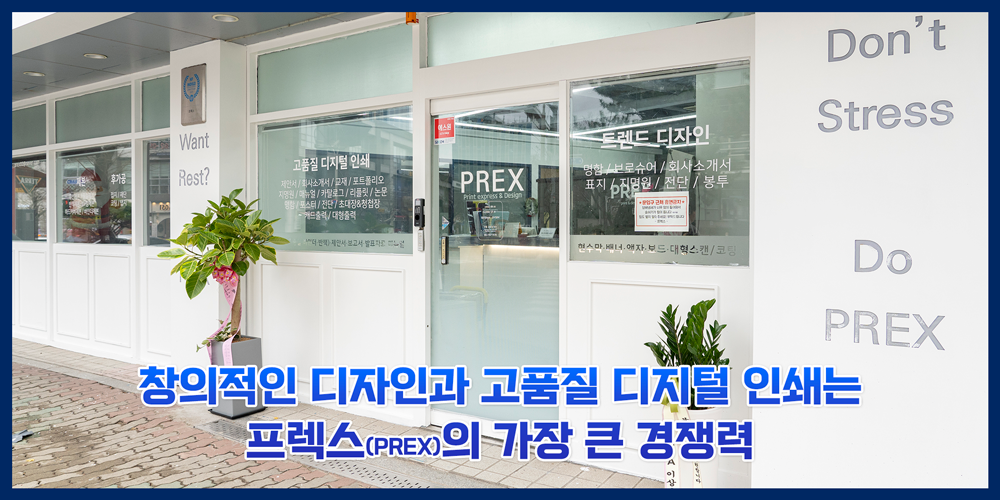 프렉스에서 고객 인쇄물 하나하나를 작업할 때마다 항상 생각하는 부분이 고객이 생각하고 상상하는 것 이상의 결과물을 전달하기 위해 필요한 부분이 어떤 것일까 하는 것입니다.