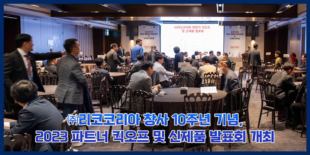 ㈜리코코리아(대표이사 박영철/www.ricoh-korea.co.kr)는 지난 10월 24일 서울 양재동에 위치한 엘타워에서 2023 파트너 킥오프 및 신제품 발표회를 성공리에 개최했다.