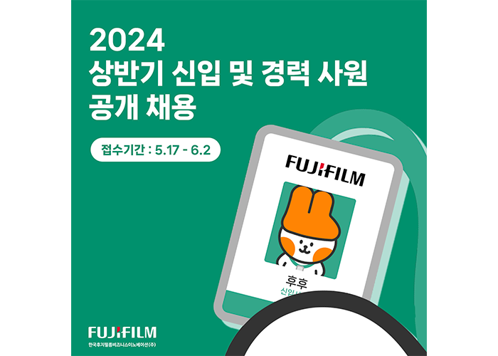 한국후지필름비즈니스이노베이션 주식회사(대표 하토가이 준, 이하 한국후지필름BI)가 2024년 상반기 신입 및 경력 사원 공개 채용을 실시한다.
