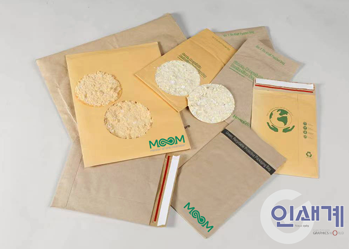 친환경 방수 종이 봉투는 뭄㈜이 중국 기업과 합작으로 개발한 제품으로 국내 시중에서 흔하게 볼 수 있는 벌집 모양의 종이 또는 비닐 소재 완충재가 들어있는 일반 종이 봉투와 달리, 크라프트 패드를 결합하고 천연섬유에서 추출한 나노 소재를 활용한 방수 코팅 기능을 갖추고 있어 기존 봉투보다 훨씬 더 튼튼하면서 재활용이 가능한 친환경적인 봉투입니다.
