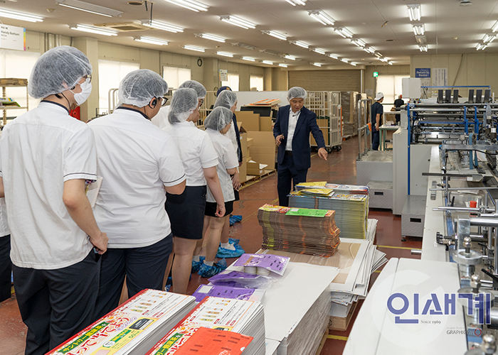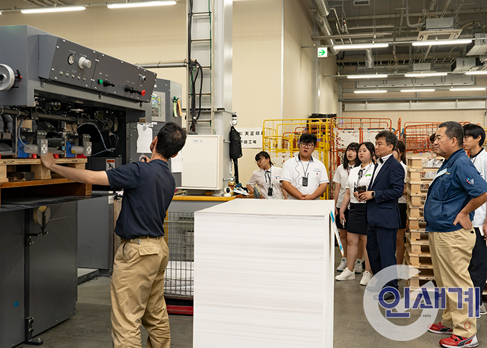 현지 문화 체험으로 첫날 일정을 시작한 연수단은 둘째 날인 4일 오전, 70여 년의 역사를 가진 우메마츠인쇄를 방문해서 스마트팩토리 인쇄 공정을 둘러 봤다. 우메마츠인쇄의 2세 경영인인 후쿠다 케이스케 전무이사는 연수단을 직접 맞이했으며, 18대의 인쇄기가 가동 중인 인쇄 현장을 안내하고 주요 공정에 대해 설명했다.