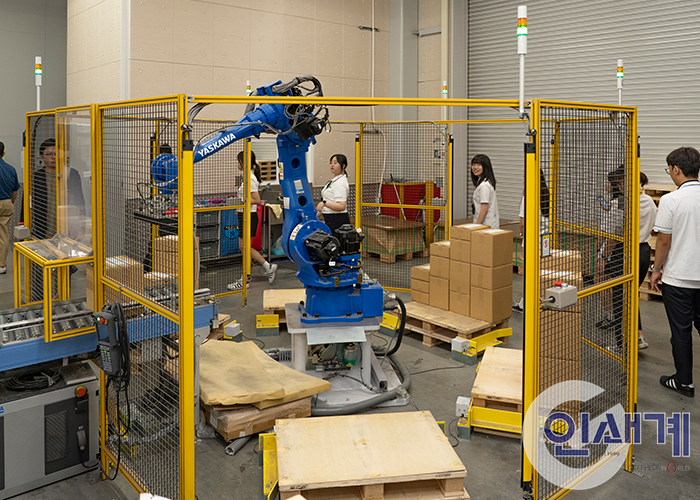 우에마츠 인쇄에서 학생들의 이목을 집중시켰던 시설 가운데 하나가 전자동 랙 창고 시스템이었다.